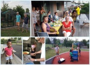 L’occasion de belles retrouvailles entre les bénévoles dispersés dans des rôles différents tout au long de l’année, et les locataires de la Résidence : mamans, enfants, seniors et jeunes, pour un pic-nique sur la terrasse et dans le jardin commun où la chaleur s’était invitée …