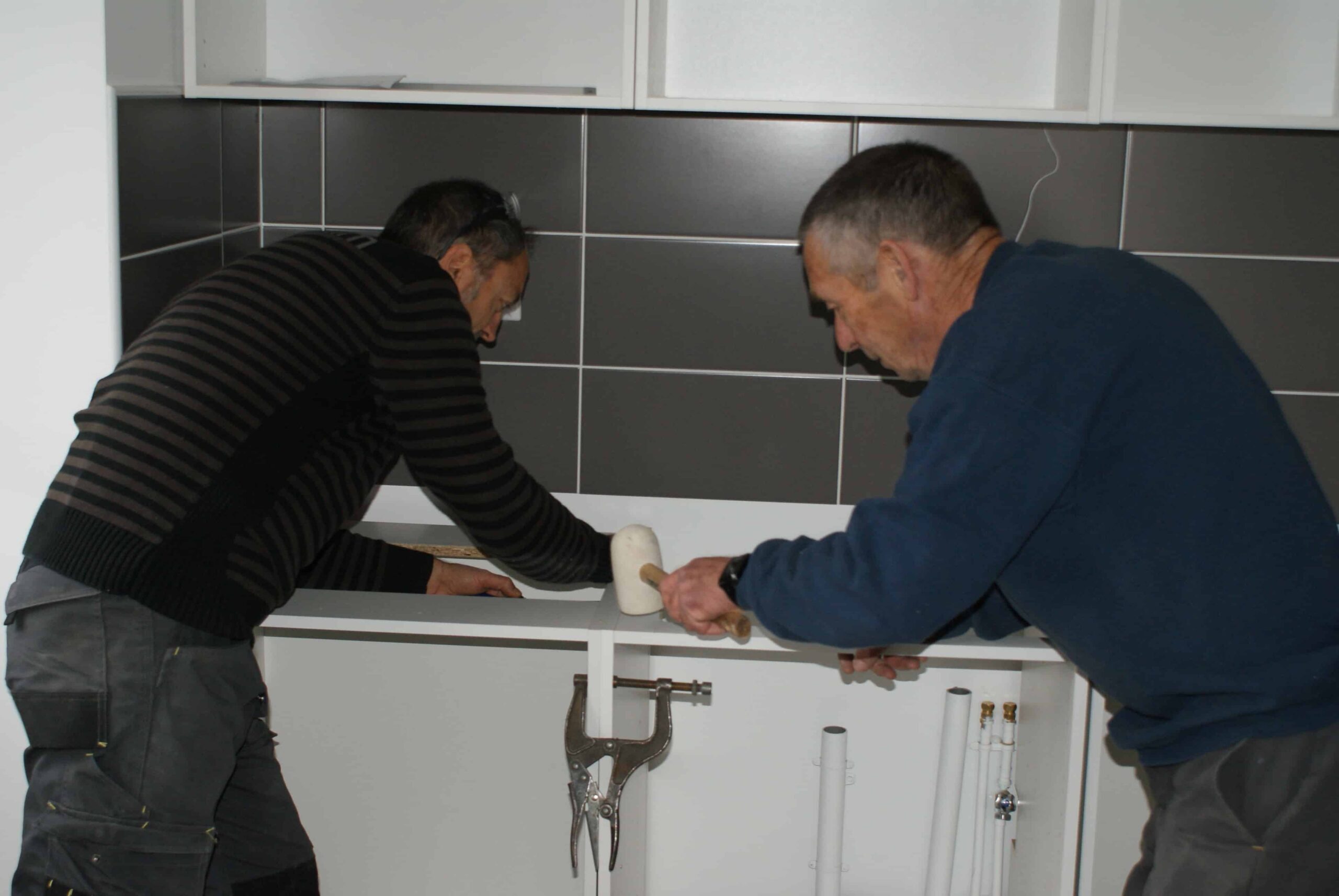 Des salariés du magasin LEROY MERLIN Besançon Chateaufarine sont venus aider les bénévoles d’Habitat et Humanisme Doubs dans l’installation des meubles de cuisine dans les 17 logements de la résidence. Un petit coup de pouce pour accélérer le rythme, donner des conseils de pose, saluer la qualité des réalisations déjà effectuées par les bénévoles.