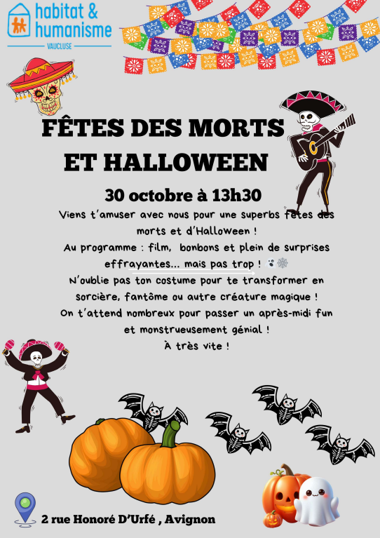 En cette fin du mois d’octobre et durant les vacances de la Toussaint, deux ateliers ont été organisés sur une thématique liée aux fêtes des morts dans deux cultures différentes : la tradition anglo-saxonne et celle d’Amérique du Sud. Ces ateliers se sont tenus dans notre maison intergénérationnelle des Remparts, en centre-ville d’Avignon. Deux fêtes bien distinctes à tous points de vue, qui ont suscité curiosité et interrogations.
